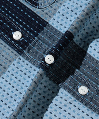 BEAMS PLUS' unique fabric, made from authentic indigo and woven on a specialised loom, features the Sashiko technique and a subtle check pattern in light and dark shades.